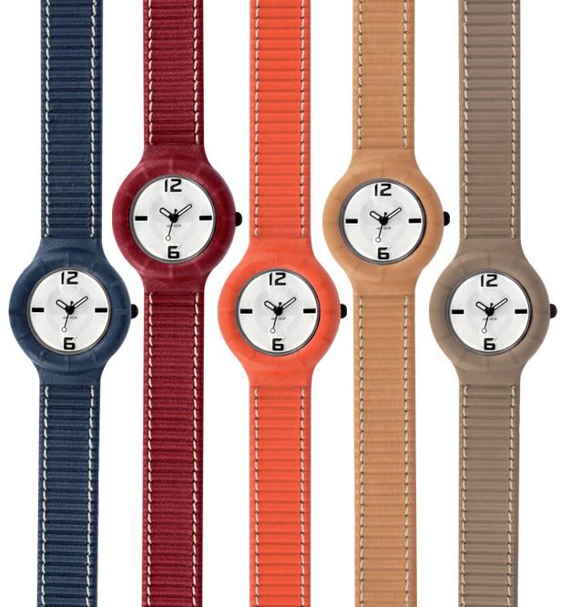 Dopo il velluto della collezione Velvet Touch uscita lo scorso inverno la sperimentazione con nuovi materiali riporta Hip Hop ad un classico dell’orologeria: la pelle. Ma come tradizione Hip Hop la pelle non si limita al cinturino ma ricopre interamente anche la cassa donando un nuovo look più “serio”. La copertura in pelle a differenza di quella in velluto non è solo applicata ma anche cucita all’anima in gomma per una miglior tenuta nel tempo dato la maggior rigidità della pelle rispetto al soffice strato di velluto; altra conseguenza di questa maggiore rigidità del cinturino è il nuovo sistema per sfilare la cassa dell’Hip Hop per cambiarne il cinturino, con i modelli in pelle la cassa si sfila dal basso, premendo sul vetro, e non più dall’alto. La collezione si compone al momento di 7 varianti di colore per due misure, small (la misura originale) e large, per un totale di 14 modelli. Per tutti i modelli è disponibile il nuovo quadrante, nero o bianco, dotato di indici e numeri rialzati che donano una nuova profondità per un forte effetto tridimensionale. Il prezzo al pubblico consigliato per i modelli della Leather Collection è di € 49.
